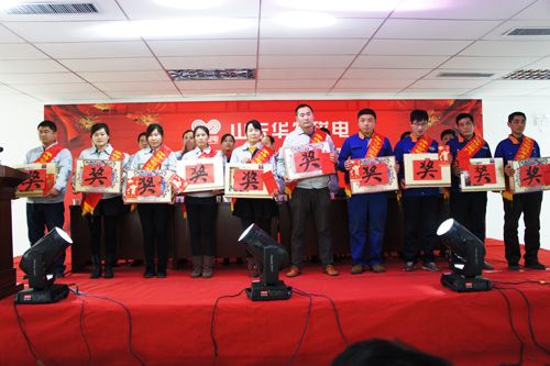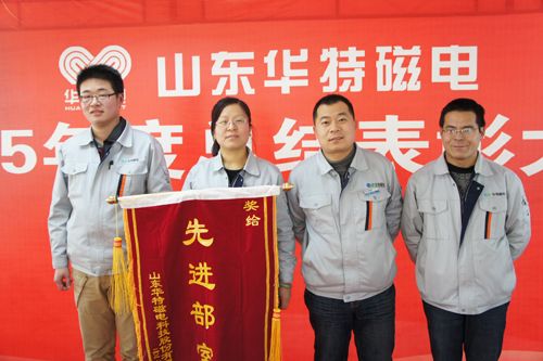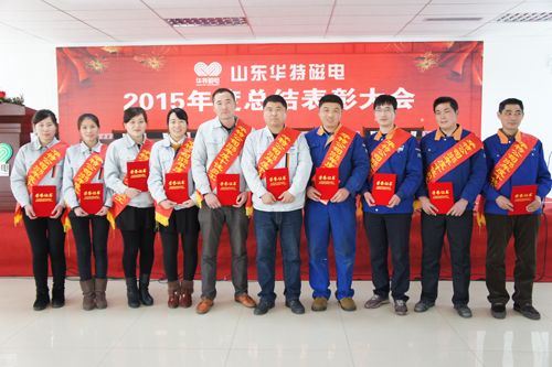 會議首先由公司總裁特別助理、工會主席王學軍宣讀了《山東華特磁電科技股份有限公司關于對2015年度先進集體、個人進行表彰的決定》。此次受到表彰的共有員工10名、營銷狀元和個營銷標兵2名、管理干部2名、先進集體4個。公司領導王兆連、劉風亮、劉梅、王學軍、王建波等向獲獎集體和個人頒發(fā)證書和獎品。大會號召全體員工要以他們?yōu)榘駱樱⒆惚韭殻ぷ鳎_拓創(chuàng)新,為全面完成公司2016年宏偉目標再做新貢獻。隨后由員工和先進集體代表做獲獎感言。公司董事長兼總裁王兆連向獲獎的集體和個人再次表示祝賀,勉勵他們再接再厲,扎實工作,再創(chuàng)佳績。