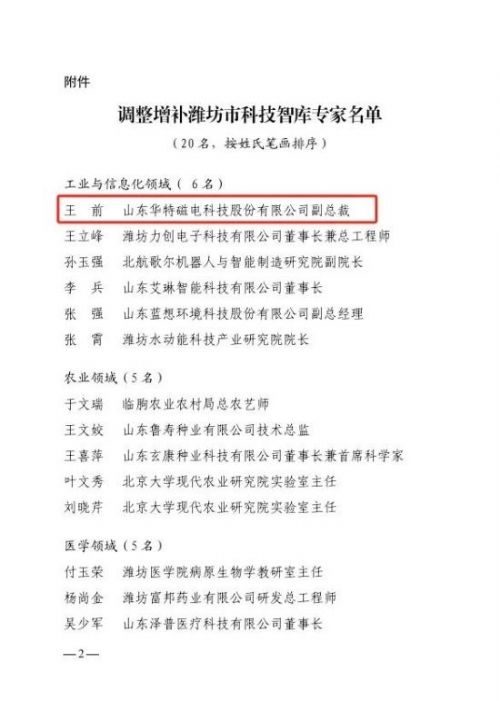 青年榜樣!華特磁電副總裁王前入選濰坊市科技智庫專家
