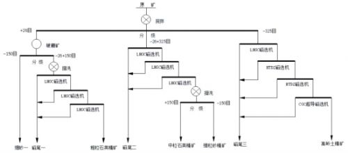 原礦經分級工藝,采用以下三種流程進行分選。